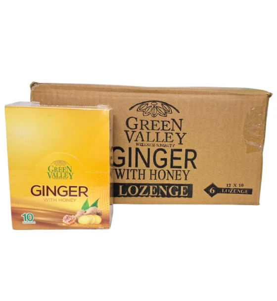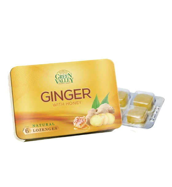 Green Valley Ginger Lozenges feature a refined blend of ginger extract and pure honey. These natural ingredients are traditionally valued for their unique aromatic profile and distinctive, balanced taste.