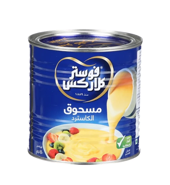 الكمية الإجمالية: كرتون يحتوي على 24 علبة. استعد لتقديم أشهى الحلويات التقليدية مع مسحوق كاسترد فوستر كلاركس، الخيار المفضل الذي تثق به الأجيال منذ عقود! يوفر لك هذا الكاسترد قواماً مخملياً ناعماً ونتائج مثالية في كل مرة، بفضل نكهة الفانيليا الغنية التي تضفي لمسة من الدفء واللذة على مائدتك. يتميز الكاسترد بسهولة تحضيره الفائقة؛ ففي غضون دقائق معدودة من خلطه مع الحليب والسكر وتسخينه، ستحصل على قوام كريمي جاهز للاستمتاع به دافئاً أو بارداً. سواء كنت تستخدمه كطبقة تزيين غنية للبودينج، الكيك، والفواكه، أو كحشوة أساسية في فنون الخبز والحلويات المبتكرة، فإن “فوستر كلاركس” يضمن لك المذاق الأصيل والجودة الثابتة التي لا تضاهى. احصل على هذا العرض الضخم الآن واجعل مطبخك مكاناً للإبداع والتحلية الفاخرة التي يحبها الجميع!