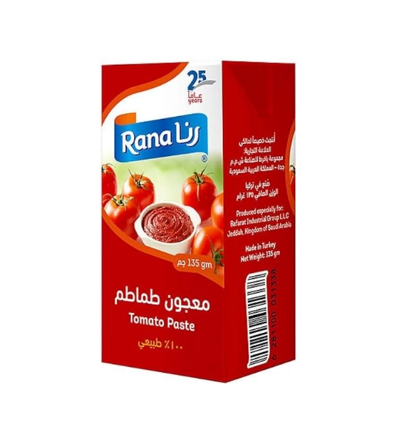 اجعلي أطباقك تنبض باللون والطعم الغني مع “معجون طماطم رنا”. يُحضر هذا المعجون من ثمار الطماطم الحمراء المختارة بعناية، ليمنحك تركيزاً فائقاً يضفي قواماً مثالياً ونكهة عميقة على كافة طبخاتك. سواء كنتِ تحضرين الكبسة السعودية، الإيدامات، أو صلصات المكرونة والشوربات، فإن معجون رنا هو المكون الأساسي الذي يضمن لكِ لوناً أحمر زاهياً ومذاقاً أصيلاً لا يقاوم. بفضل حجم العبوة العملي (135 جم)، يمكنكِ استهلاك الكمية المطلوبة والحفاظ على الطزاجة دائماً. هذه الكرتونة المكونة من 48 حبة توفر قيمة اقتصادية رائعة وهي الخيار الأفضل للمنازل والمطاعم التي تبحث عن الجودة والوفرة في منتج واحد.