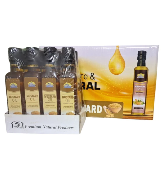 AlKhair Mustard Oil is a 100% pure, cold-pressed oil that retains its natural pungency and characteristic golden hue. Sourced with a commitment to quality, this unrefined oil is known for its rich composition, featuring Omega-3 and Omega-6 fatty acids as part of its natural botanical profile. Traditionally valued for generations, it is a versatile part of daily routines across many cultures. It is widely appreciated for traditional pickling and as a premium addition to diverse culinary practices. Beyond the kitchen, its unique texture and distinctive aroma make it a preferred choice for body massages and traditional hair care rituals. Available in a bulk carton of 48 bottles (organized into 4 packs of 12), AlKhair Mustard Oil offers a premium natural experience for those who prioritize authentic, minimally processed ingredients in their lifestyle.