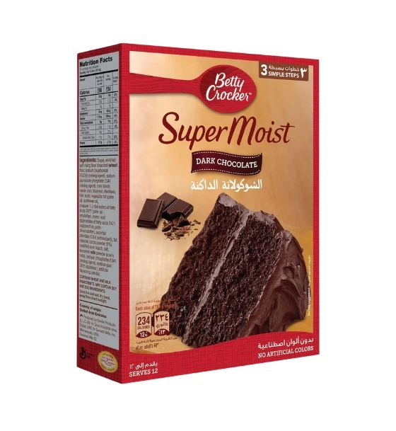 Betty Crocker Dark Chocolate Cake Mix is an easy-to-use baking mix for making rich, moist dark chocolate cakes. Simply add basic ingredients to prepare a delicious dessert, suitable for birthdays, celebrations, and everyday baking at home or for small food service use.